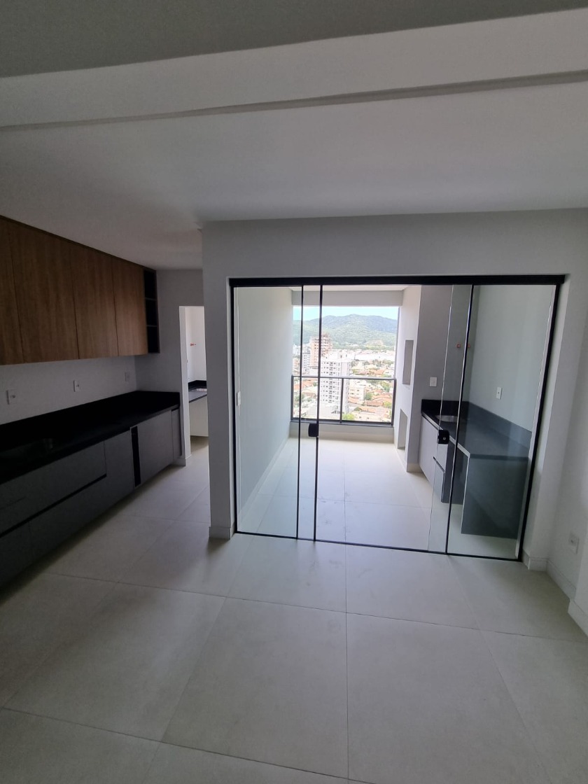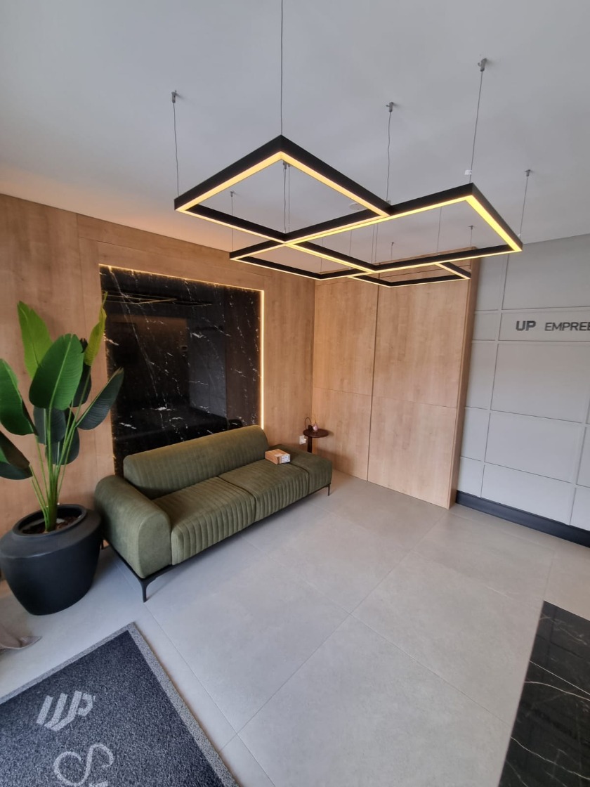 Apartamento semi-mobiliado com 3 suítes, lavabo e living integrado. Possui sacada com churrasqueira, acabamento em gesso, piso em porcelanato, espera para ar-condicionado split e 2 vagas de garagem.